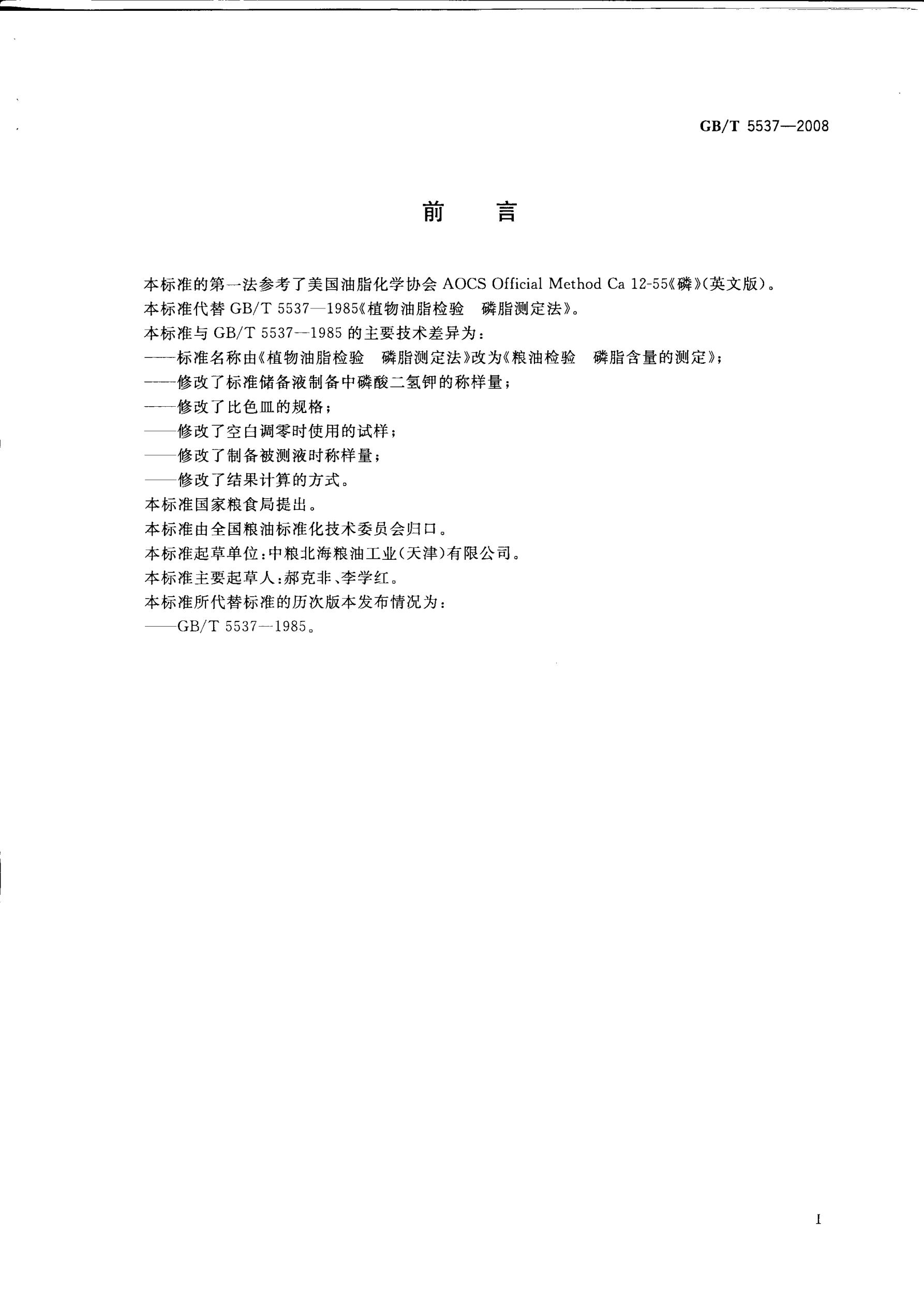 磷脂含量的測定 GB/T5537-2008